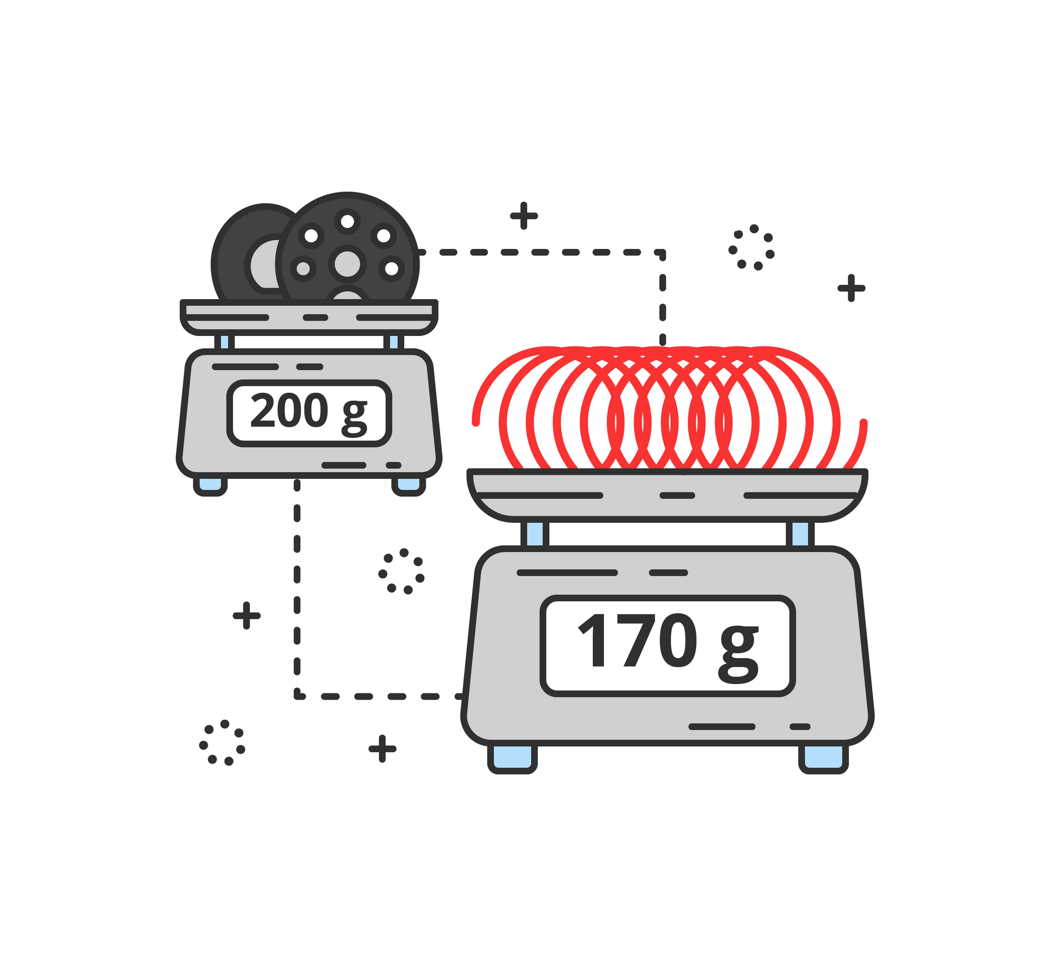 Zieh 200 g (Leergewicht der 1kg Spule)
