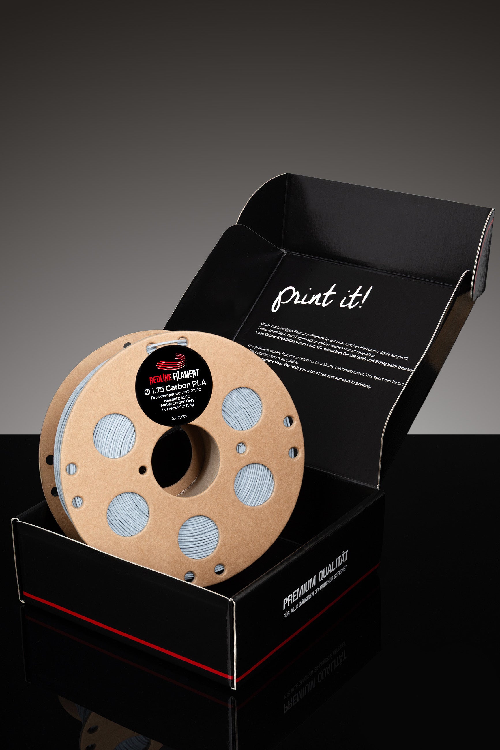 LIEFERUMFANG: 1kg hochwertiges Filament (330m) sauber verpackt, inkl. Trocknungsmittel, aufgewickelt auf einer Hartkartonspule und Versand in einem schwarzen Pappkarton.